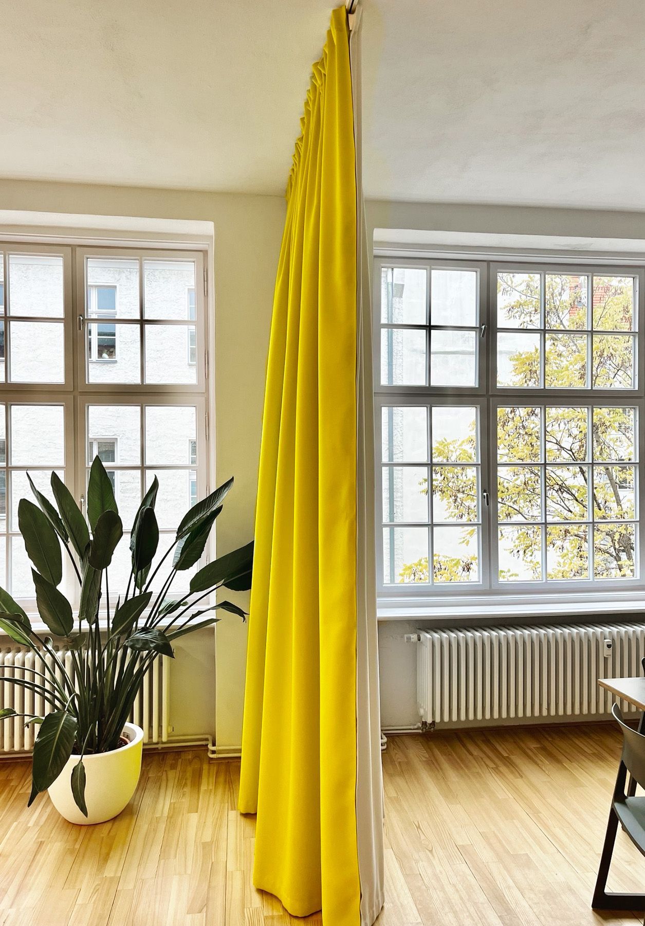 Ja, der ACOUSTIC DIVIDER VARIO kann auch mit gebogenen Schienen umgesetzt werden. Der minimale Biegeradius beträgt bei der MONOTRAC MEZZO 35 cm und bei der MONOTRAC GRANDE 50 cm.
